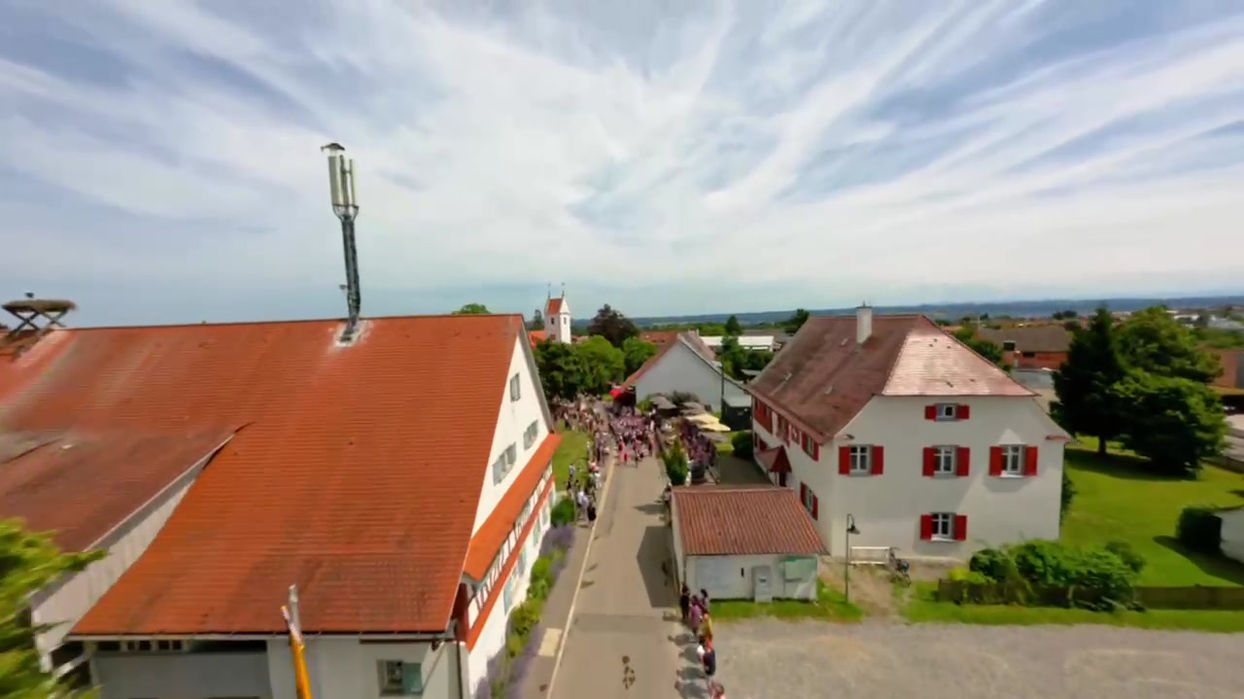 13:30 Uhr - Gesamtchor auf dem Dorfplatz und anschließendem Fahneneinmarsch mit MV Fleischwangen und La Paloma Boys