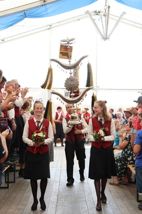 Beim anschließenden Fahneneinmarsch mit der Musikkapelle Fleischwangen wurde gemeinsam das Jubiläum gefeiert. Den ganzen Sonntag über wurde zudem ein Kinderprogramm angeboten. Nach der Bekanntgabe der Wertungsspielergebnisse rundeten die „La Paloma Boys“ das Fest musikalisch ab.